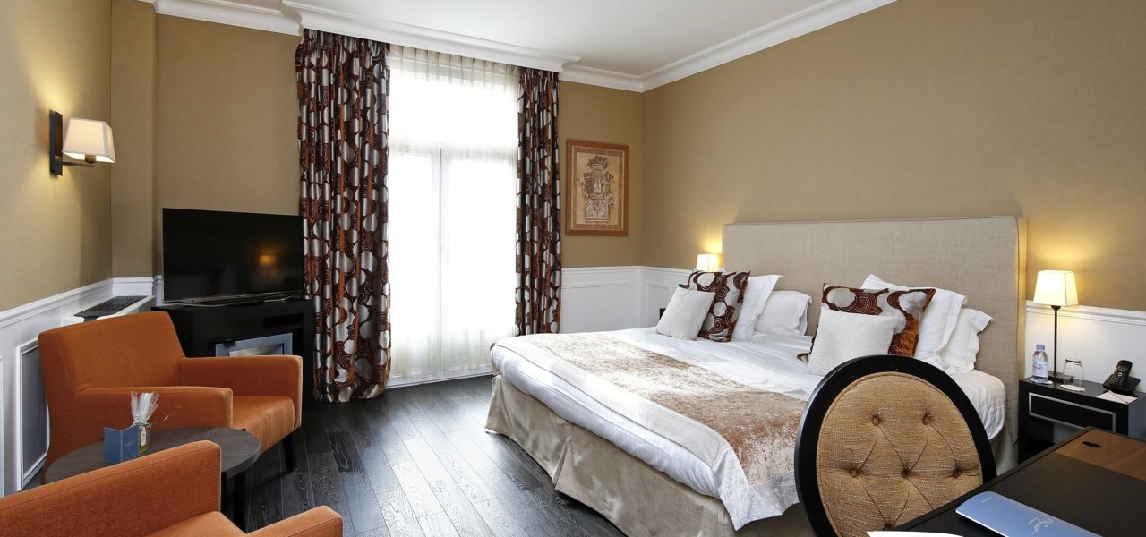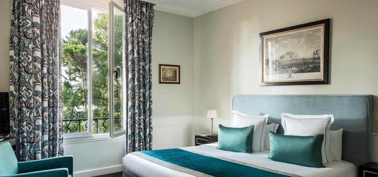 Our 45 rooms offer a five-star comfort service. Each has its own style with harmonized shades of turquoise, burgundy and beige to create a warm and refined atmosphere.